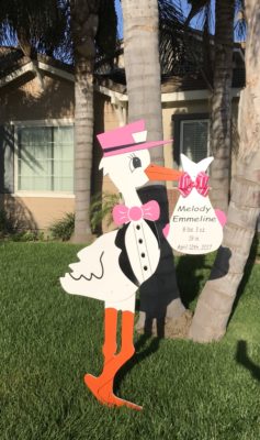 Call us 714-262-0210 to rent a stork sign to welcome home your new baby or grandbaby or our personalized cupcake birthday sign to celebrate your favorite person’s birthday!