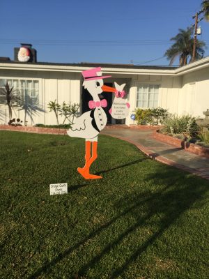 Please contact us at 714-262-0210 to rent a stork sign for your new baby or grandchild or a birthday cupcake or flamingo lawn sign for your favorite birthday boy or girl.
